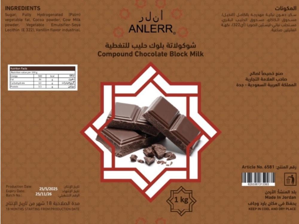- النوع: شوكولاتة خام بالحليب للتذويب والاستخدام المباشر.