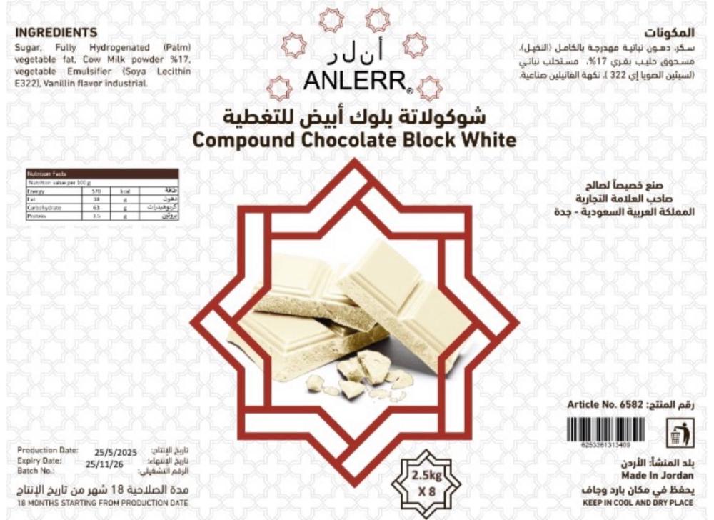 للمزيد من ماركةشوكولاتة بلوك ابيض انلر 2.5 كغ