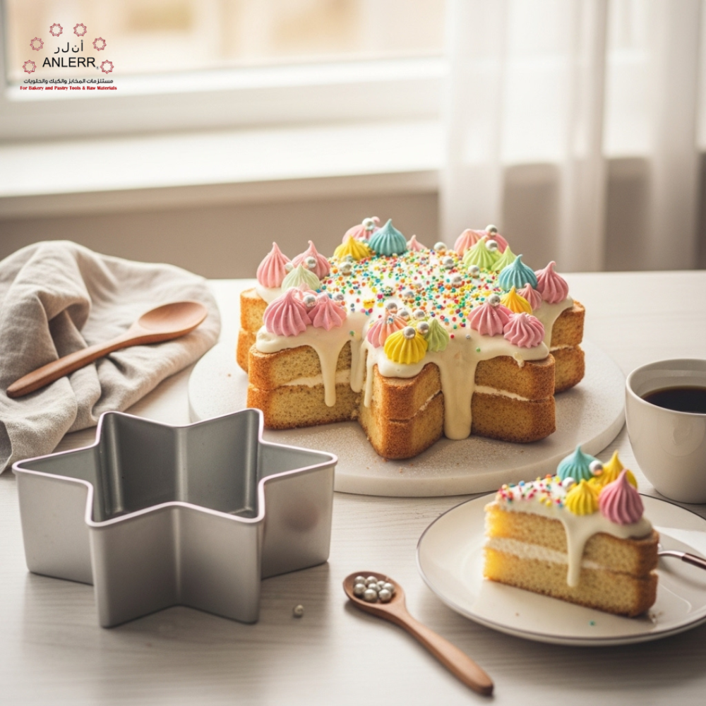 ✨ نصيحة من أنلر: لنتائج مبهرة، قم بتزيين الكيك النجمي بالفروستينج اللامع أو رشات السكر الملونة لإبراز شكل النجمة!